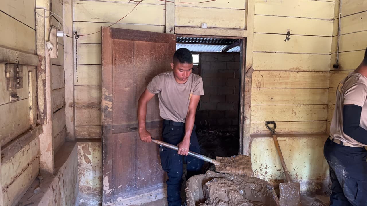 Minggu, 18 Januari 2026, personel Satuan Brimob Batalyon A Polda Sumatra Utara melaksanakan kegiatan gotong royong pembersihan rumah dan gudang milik warga yang terdampak bencana alam di Desa Hutanabolon dan Desa Aek Tolang, wilayah Kabupaten Tapanuli Tengah, sebagai wujud kepedulian dan pengabdian Polri kepada masyarakat pascabencana.