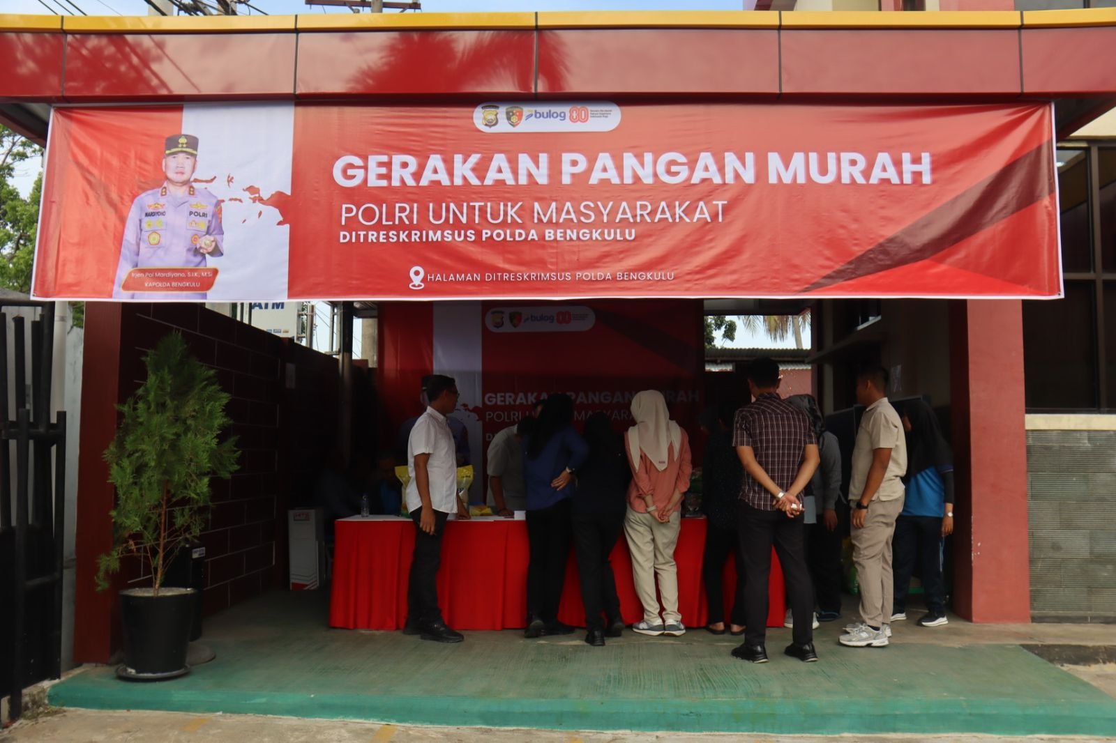 TBNews,Bengkulu – Ditreskrimsus Polda Bengkulu menggelar kegiatan Gerakan Pangan Murah (GPM) di lapangan Ditreskrimsus Polda Bengkulu pada Selasa, 19 Agustus 2025, pukul 09.00 WIB. Kegiatan ini dipimpin oleh Dirreskrimsus Polda Bengkulu Kombespol Aris Tri Yunarko,S.I.K., M.Si., melalui Kasubdit Indigasi Kompol Jery Antonius Nainggolan, S.I.K., M.H dan Kasubdit Tipikor Kompol Muhammad Syahir Fuad, S.H., S.I.K., M.H