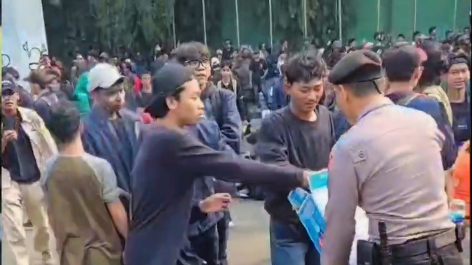 Humanis, Polisi Bagikan Air Pada Massa Aksi Unjuk Rasa di DPR