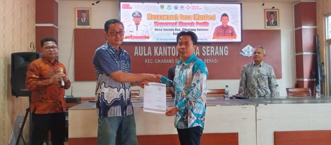 Cikarang Selatan – Pemerintah Desa Serang menggelar Rapat Minggon sekaligus Musyawarah Desa (Musdes) terkait pergantian Ketua Koperasi Desa Merah Putih (KDMP) di Balai Desa Serang, Kamis (13/11/2025) mulai pukul 09.00 WIB.