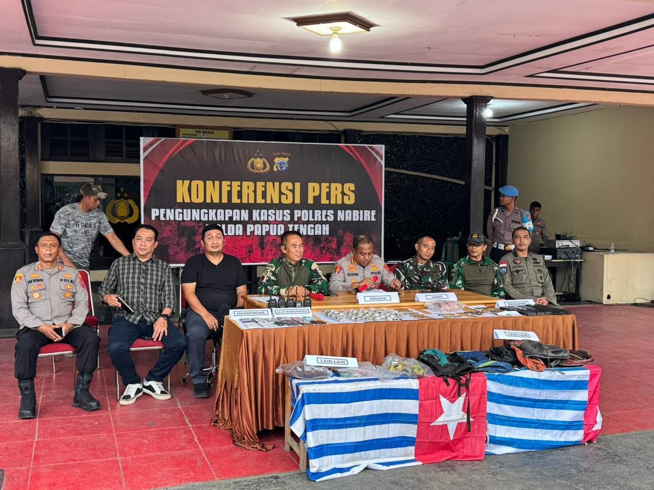 NABIRE — Aparat gabungan TNI-Polri menggelar konferensi pers terkait perkembangan upaya penegakan hukum terhadap target daftar pencarian orang (DPO) kelompok kriminal bersenjata (KKB) di Kabupaten Nabire yang digelar di Polres Nabire pada Senin (2/3/2026) pukul 16.00 WIT.