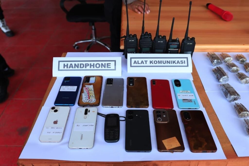 “Sebagaimana yang kita lihat di depan rekan-rekan media, ini adalah daftar barang bukti yang diamankan di lokasi penegakan hukum kemarin di Kali Nabarua,” ujar Kombes Pol Gustav.