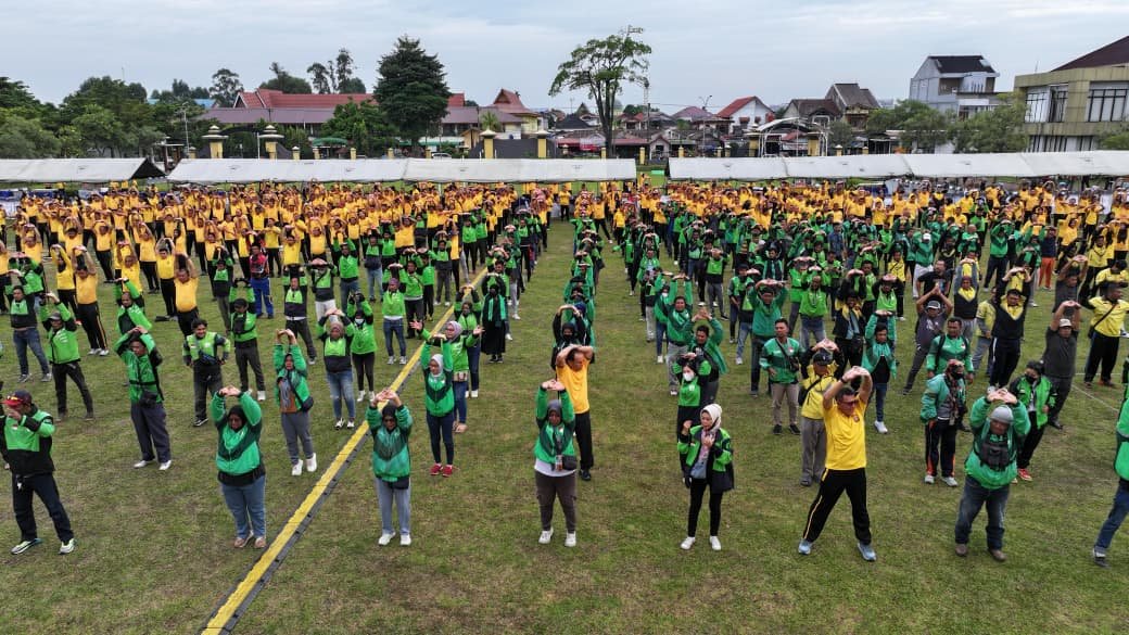 Pekanbaru – Suasana hangat dan penuh kebersamaan tampak di halaman Mapolda Riau, Selasa (9/9/2025). Ratusan pengemudi ojek online (ojol) berkumpul bersama jajaran Kepolisian Daerah (Polda) Riau untuk memperkuat silaturahmi melalui kegiatan olahraga dan makan bersama serta berbagai kegiatan sosial.