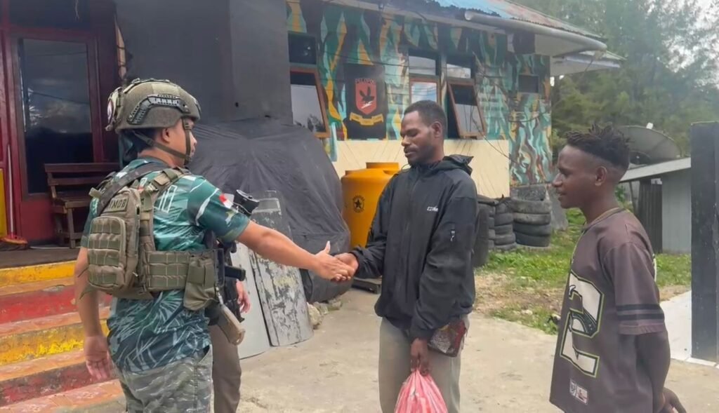 Paniai, Papua Tengah – Wujud kepedulian terhadap masyarakat kembali ditunjukkan oleh personel Operasi Damai Cartenz. Pada Senin (20/10/2025), personel Satgas Ops Damai Cartenz Bharada Sahdan melaksanakan kegiatan humanis dengan membagikan sembako kepada warga di Distrik Paniai Timur, Kabupaten Paniai.
