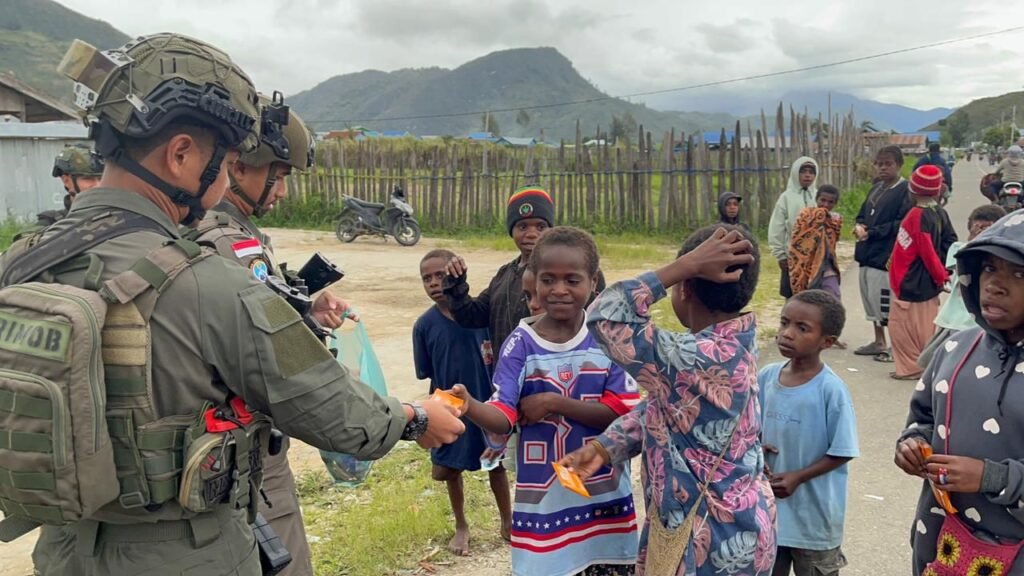 Paniai, Papua Tengah — Dalam upaya mempererat hubungan antara aparat keamanan dan masyarakat, personel Satgas Operasi Damai Cartenz Sektor Paniai menggelar kegiatan humanis berbagi kebahagiaan dan keceriaan bersama warga serta anak-anak di Jalan Modern, Enarotali, Kabupaten Paniai, pada Kamis (9/10/2025) sore.