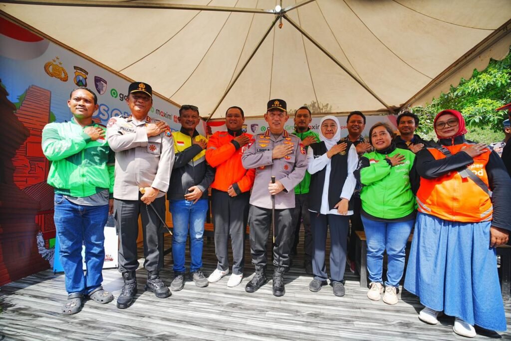“Alhamdulillah baru saja kita melaksanakan kegiatan apel ojol kamtibmas dengan tema Jogo Jatim bersama ojol dan teman Polda Jatim. Tentunya saya berterima kasih khususnya kepada komunitas ojol yang hari ini telah melaksanakan apel sekaligus juga menyampaikan deklarasi ojol kamtibmas,” kata Sigit.