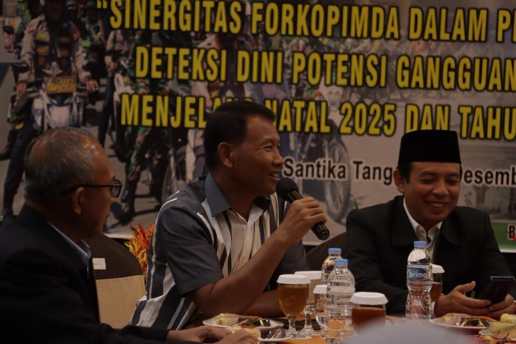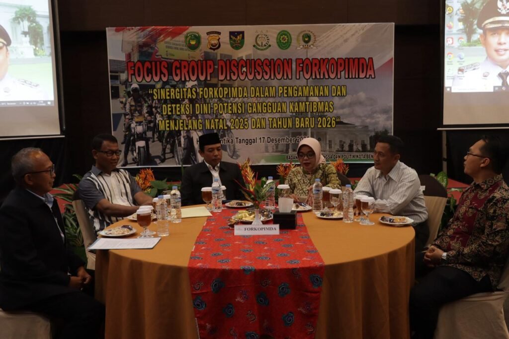 Kota Bengkulu – Dalam rangka memperkuat sinergitas lintas sektor menjelang perayaan Natal 2025 dan Tahun Baru 2026, Polresta Bengkulu menggelar kegiatan Focus Group Discussion (FGD) dengan tema “Sinergitas Forkopimda dalam Pengamanan dan Deteksi Dini Potensi Gangguan Kamtibmas Menjelang Natal 2025 dan Tahun Baru 2026”. Kegiatan tersebut berlangsung di Hotel Santika Bengkulu, Rabu (17/12/2025) malam.