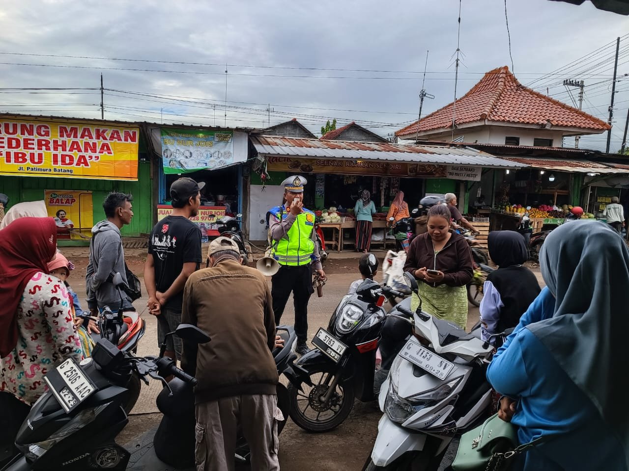 Petugas juga melakukan dialog ringan dengan pedagang dan pengunjung untuk mendengarkan keluhan serta masukan terkait kondisi lalu lintas di kawasan Pasar Batang. Selain itu, Sat Lantas turut membagikan brosur edukasi keselamatan dan mengingatkan masyarakat agar selalu waspada saat melintas di area yang ramai aktivitas.
