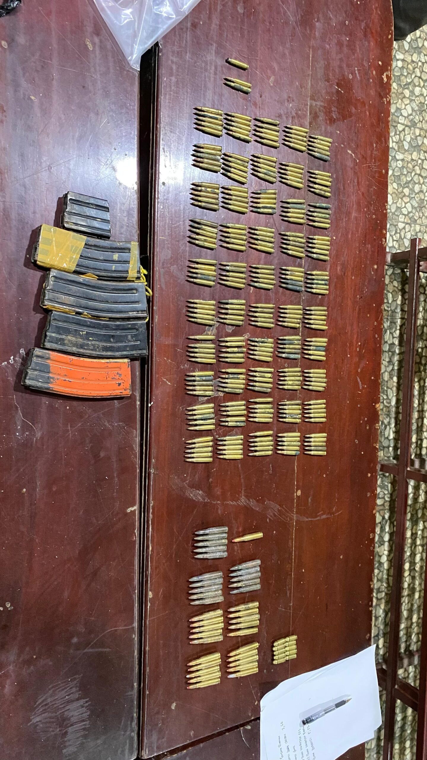 Dari hasil pengungkapan tersebut, aparat turut mengamankan sejumlah barang bukti berupa satu pucuk senjata api rakitan laras panjang, 298 butir amunisi berbagai kaliber, lima buah magazen senjata, beberapa unit telepon genggam, serta tas dan dokumen identitas yang diduga berkaitan dengan aktivitas para pelaku.