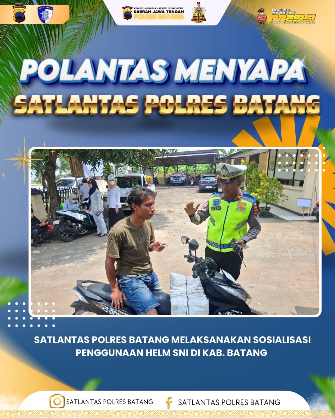 Satuan Lalu Lintas Polres Batang melaksanakan kegiatan Polantas Menyapa yang berlangsung di Polsek Warungasem, Kabupaten Batang. Kegiatan ini merupakan bentuk pelayanan dan pendekatan humanis kepolisian kepada masyarakat dalam rangka meningkatkan kesadaran serta kepatuhan terhadap peraturan lalu lintas.