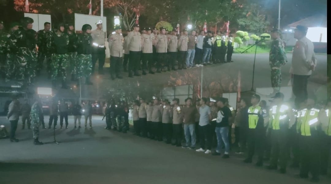 Cikarang Selatan – Dalam rangka menjaga keamanan wilayah dan mengantisipasi potensi kerusuhan imbas aksi unjuk rasa di Jakarta, Polsek Cikarang Selatan bersama Koramil 08 Lemah Abang menggelar Apel Malam Gabungan TNI-Polri pada Sabtu malam (30/08/2025). Kegiatan tersebut berlangsung di halaman Mapolsek Cikarang Selatan, Desa Cibatu, Kecamatan Cikarang Selatan, Kabupaten Bekasi, mulai pukul 20.30 WIB hingga selesai.